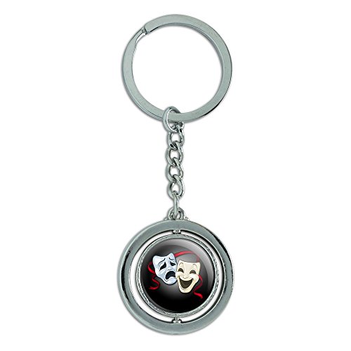 -. Title : Drama Comedy Tragedy Masks Theater Spinning Round Metal Key Chain Keychain Ring