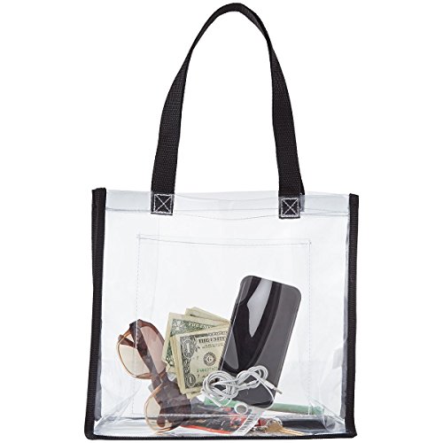 -. Feature : Heavy-gauge clear plastic / Large main compartment with webbed handles / Inside pocket for valuables / Gusseted bottom / SIZE: 12" X 12" X 6"