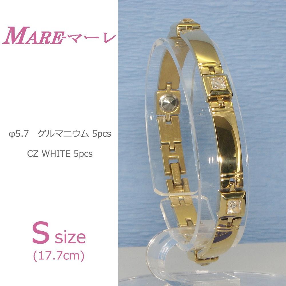 | 表面にスワロフスキーキュービックジルコニア(ホワイト)を5個、装着面に大粒ゲルマニウムを5個配置したブレスレットです。 |