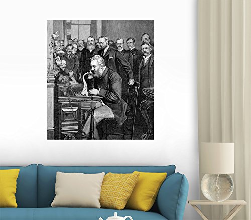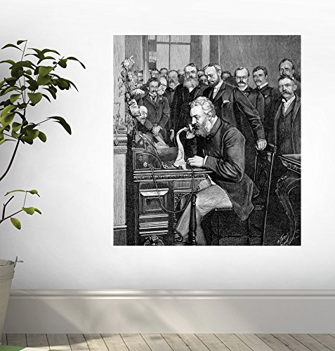 - Title : Alexander Graham Bell Making Telephone Call Wall Decal - 18 Inches H x 16 Inches W - Peel and Stick Removable Graphic
