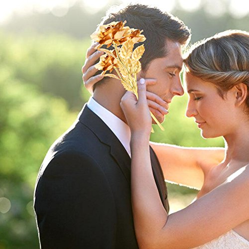 ZJchao 24k Yellow Gold Foil Collectible Rose Flower Unique Gift for Girlfriend Mom Wife Artificial Flower for Womens