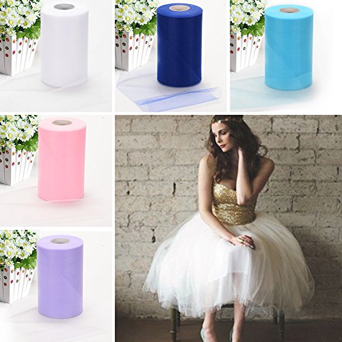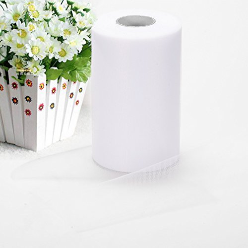 - ★ MULTIPLE PURPOSES: White Tulle fabric roll is a great multi-functional wedding accessory. Fasten white tulle ribbon to the church pews to line the aisle, tie white wedding tulle into bows to dress up your reception tables, use white wedding tulle for wedding chair bows, sashes and tutu skirts.The white tulle spool roll is the suitable material to DIY Tutu, DIY crafts and nice dress, colorful color satisfied to your require.