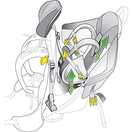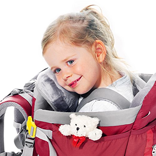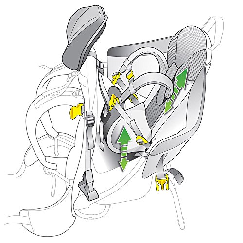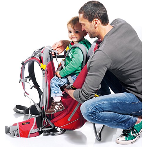 -. Feature : 5-point safety harness is designed with the kid's proportions in mind. Simple adjustability and color-coded buckles make it easy to handle / Vari Quick adjustment system, anatomically shaped shoulder straps with 3D mesh lining. Pull-forward hip belt. Reflective loop for safety light / Side entry for the children's seat is both convenient and safe. Sturdy, state-of-the-art frame construction. Breathable child seat cushions. Two handles / Several storage options: mesh front pocket with zipped outer pocket, mesh side pockets, large zipped compartment under the seat, long zipped compartment for hydration system or sun/rain cover (accessory), hip fin pocket. Mesh pockets with teddy / Weight: 6 lbs 8 oz. (2950 g). Volume: 1100 cubic inches (18 Liters). Size: 26 / 15 / 13 (H x W x D) Inch. Material: Deuter-Ripstop 210. Deuter-Ballistic Nylon
