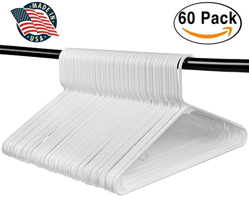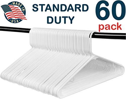 Best Standard Everyday White Plastic Hangers, Made in USA Long Lasting Tubular Hangers, Value Pack of 60.