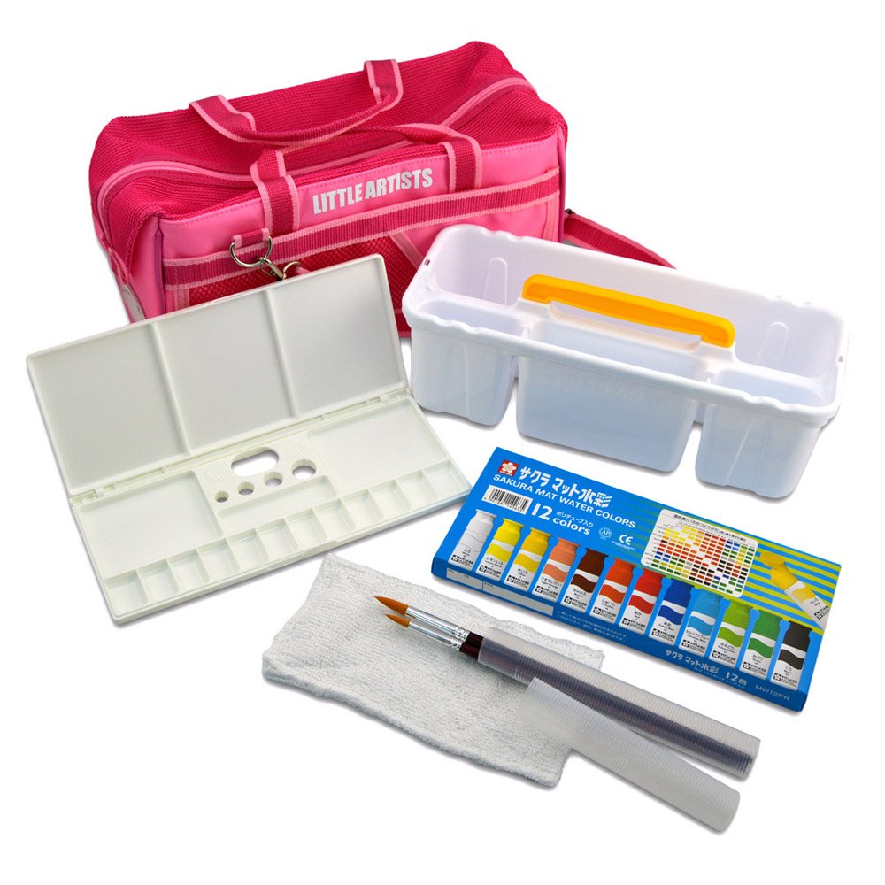 Mat watercolor 12 colors (12 ml) Polytube paint, paintbrush, painting brush case, pallet, brushwork, clothespin