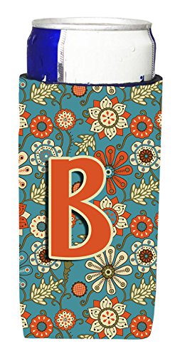 Letter B Flowers Retro Blue Ultra Beverage Insulators for slim cans CJ2012-BMUK