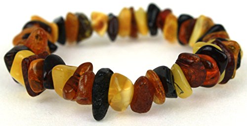 BALTIC AMBER TEETHING BRACELET OR ANKLET FOR BABIES, TODDLERS, AND KIDS - LAB-TESTED - MULTICOLORED CHIPS - STRETCHY CORD - 5.5 INCHES