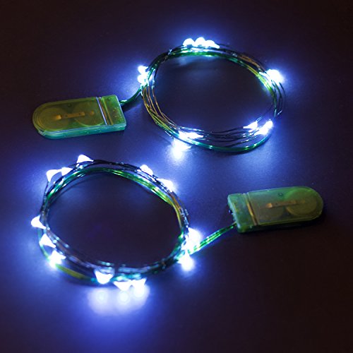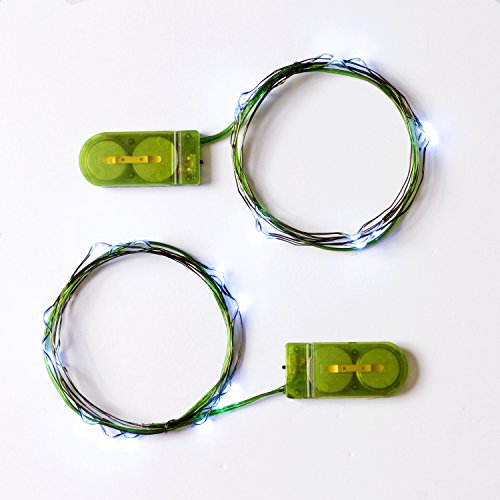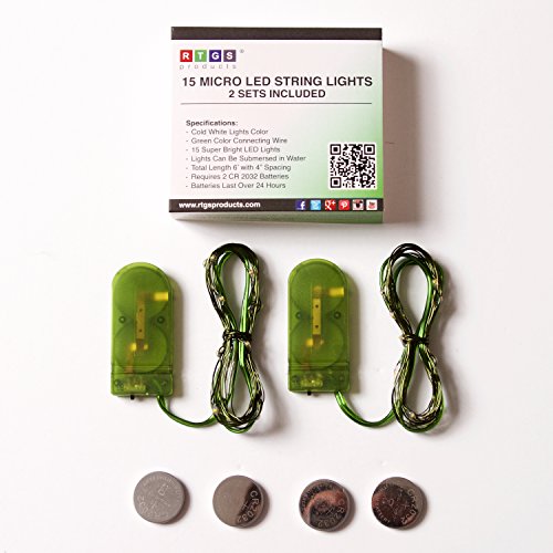 Rtgs 2 Sets of Micro LED 15 Super Bright Cold White Color Lights Battery Operated on 6 Ft Long Green Color Ultra Thin String Wire [NEWEST VERSION] + 100% RTGS Products Satisfaction Guarantee