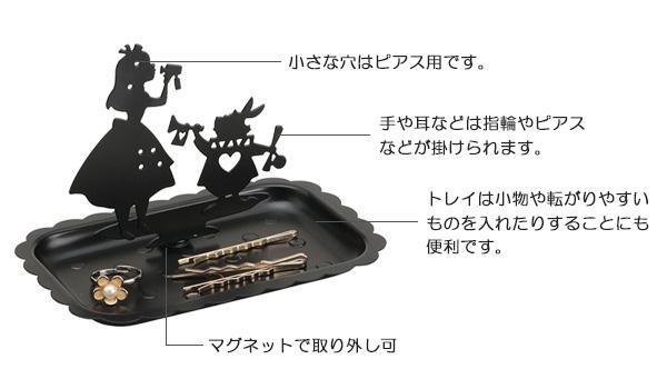 お気に入りの小物をかわいく飾れるコンパクトなトレイです。アリスとウサギのシルエット部分にピアスや指輪が飾れます。