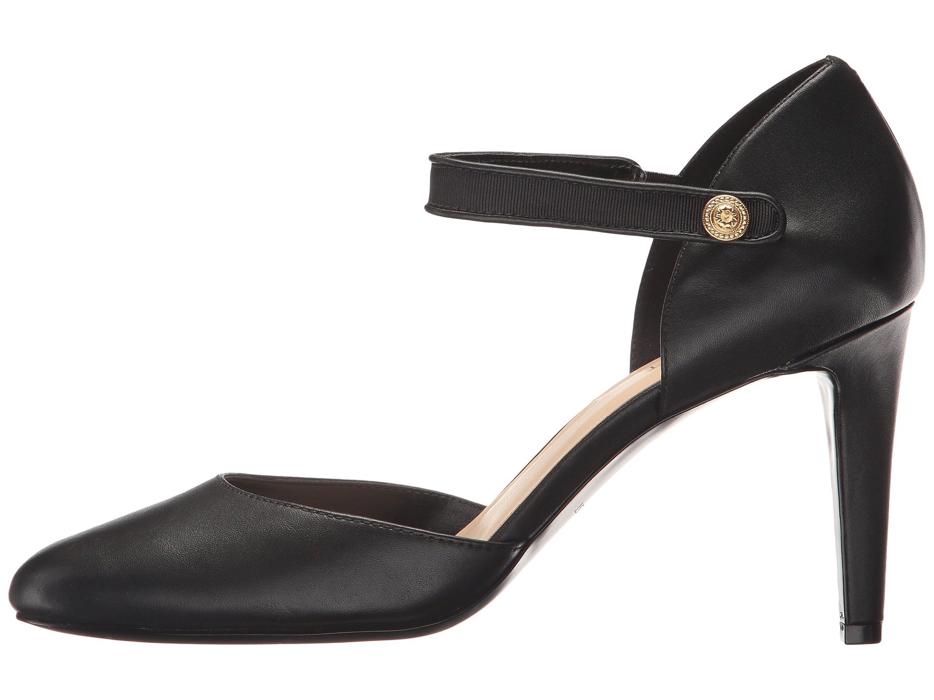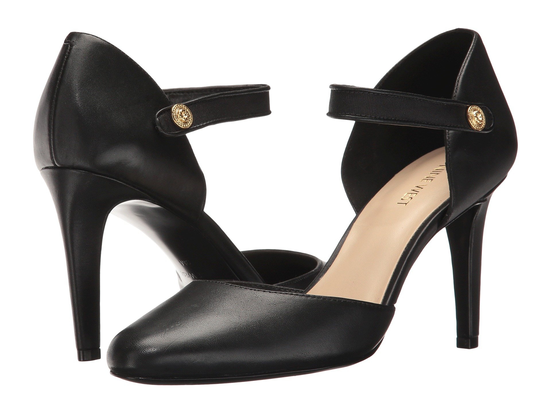 | Product Information SKU: #8969559Refine your 9-to-5 look with the polished Nine West? Hansine pump.Leather upper.Strap over instep with button closure.Round toe.Man-made lining.Lightly padded footbed.Wrapped heel.Man-made outsole.Imported.Product measurements were taken using size 8.5, width M. Please note that measurements may vary by size.Weight of footwear is based on a single item, not a pair.Measurements: Heel Height: 3 1?2 in Weight: 8 oz |