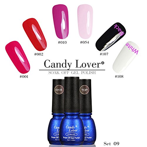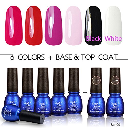 Professional Gel Polish UV LED - Soak Off Nail Lacquers Kit with Clear Base Coat and Top Coat for French Manicure Pedicure, Pack of 8, 8ml Each (Set #09)