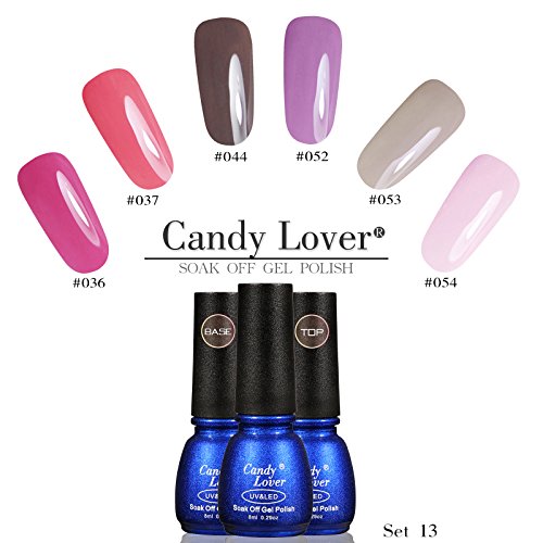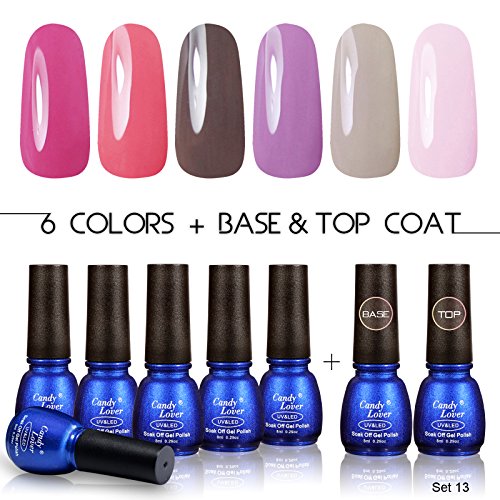 Professional Gel Polish UV LED - Soak Off Nail Lacquers Kit with Clear Base Coat and Top Coat for French Manicure Pedicure, Pack of 8, 8ml Each (Set #13)
