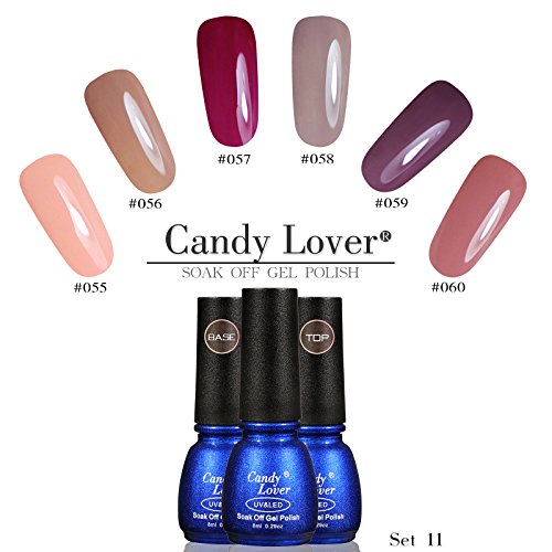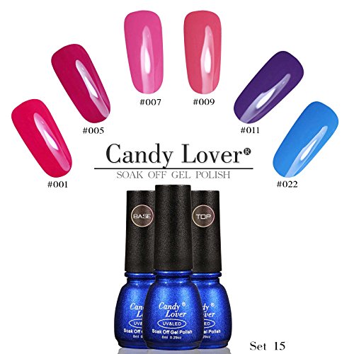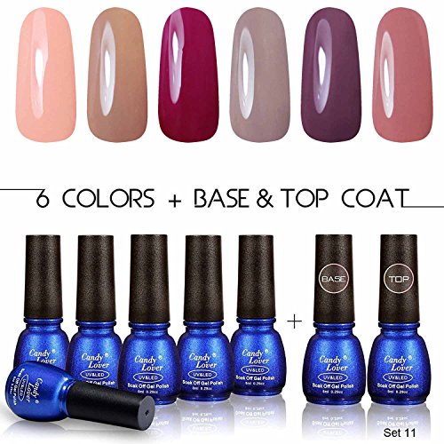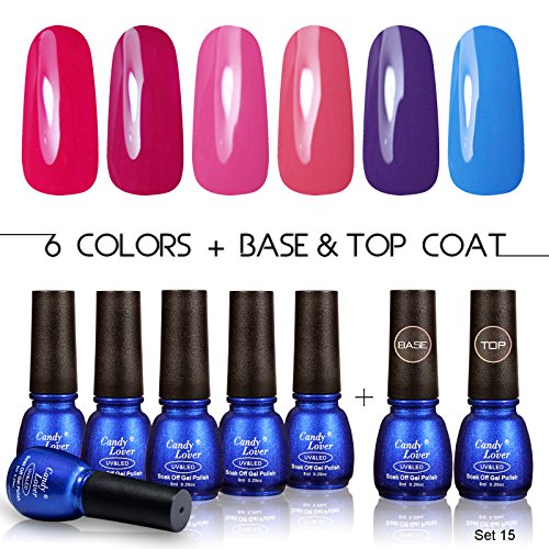 Professional Gel Polish UV LED - Soak Off Nail Lacquers Kit with Clear Base Coat and Top Coat for French Manicure Pedicure, Pack of 8, 8ml Each (Set #15)