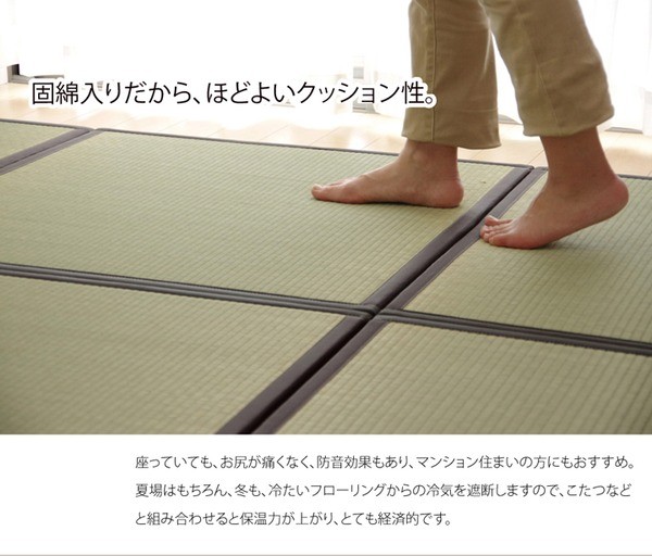 【原産国】日本製素材:表地=い草 中材=固綿10mm 裏地=ウレタンフォーム3mm(滑りにくい加工)