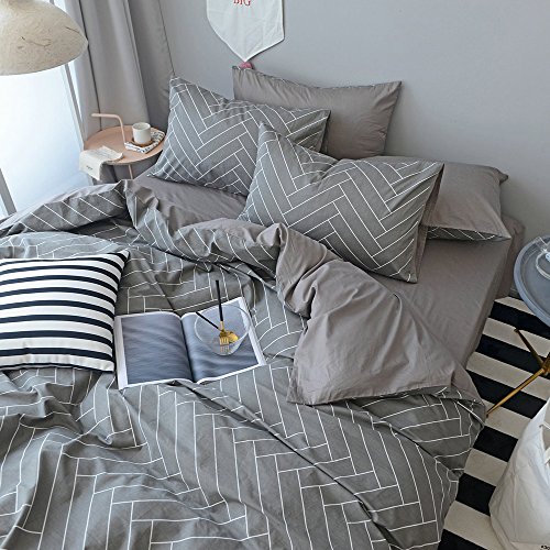 Super Soft Geometric Queen Duvet Cover Set 3 Piece 100% Natural Cotton Striped Bedding Set Full Grey Comforter Cover,Lightweight Breathable and Comfortable by HighBuy (Grey, Queen) -100% Soft Cotton Bedding Cover 3 PC Set is comfortable, breathable,absorb sweat,hypoallergenic,tonal downy elegant,good for kids boys girls,babies. -Our duvet set made in special technique,make old processing,it will be more beautiful and comfortable,anti-wrinkle, fade resistant. -Zipper Closure is more convenient and durable than button. -Corner Ties to help you hold your duvet right in place. Package List 1 Piece Duvet cover (Comforter sold separately, not in sets)? 2 Pieces Pillow shams Note, As different computers display colors differently, the color of the actual item may vary slightly from the above images.? Size Information? Twin-size? Duvet cover: 68 by 86 inches? Pillow Sham: 20 by 26 inches? Full/Queen size Duvet cover: 90 by 90 inches? Pillow sham: 20 by 26 inches? King size Duvet cover: 104 by 90 inches? Pillow sham: 20 by 36 inches? Wash Instruction Wash separately, avoid soaking for more than 30 minutes Machine wash,water's temperature can't over 86 Fahrenheit Do not bleach; No tumble dry, low heat ironing(do not suggest ironing, or natural wrinkle will disappear);Do not dry-clean Hang to dry in the shade, avoid sun exposure Brand HighBuy is a registered brand. Every product is packaged by HighBuy not any other sellers. We are professional in making all kinds of Bedding Sets Collections, such as Quilt Sets, bedspread-sets, comforter-sets, blankets and so on, high quality with cheap price. You can also click HighBuy above the title to get more choice. 0