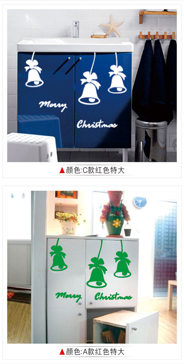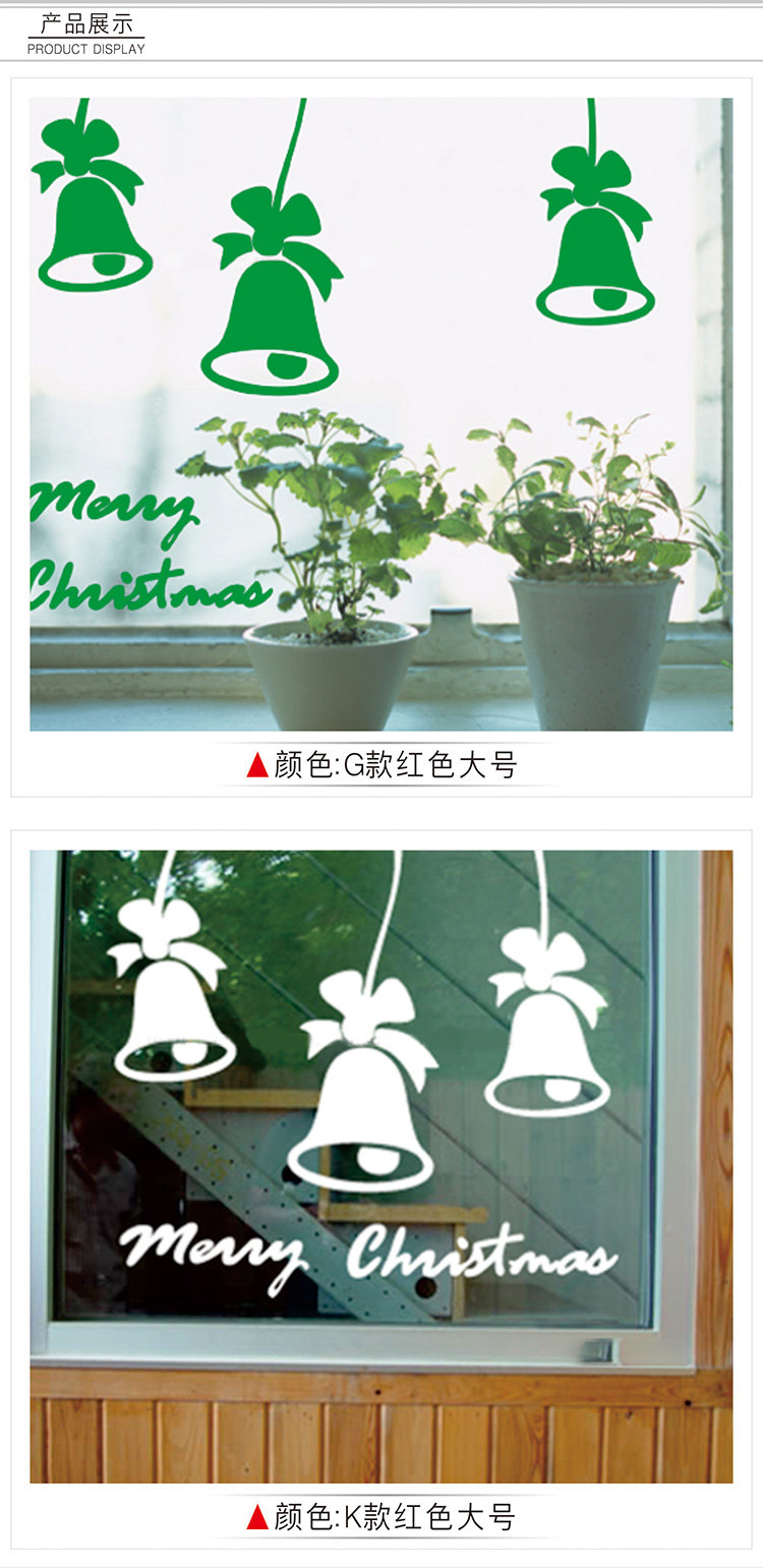 窗贴纸圣诞置装饰诞门贴橱旦圣贴画窗户璃节墙贴玻门装饰铃铛