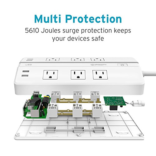 Surge Protection for Multiple Devices ? This 5610-Joule surge protector provides reliable protection for your workstations, printers, broadband modems, and everyday household electronics. ? Intelligent circuitry with built-in voltage sensing detects and responds to your device's power needs, while safety features ensure that your devices are protected. ? Lighted on/off power switch with an integrated 10 Amp circuit breaker protect your devices from voltage spikes.