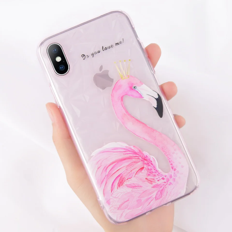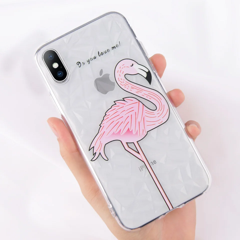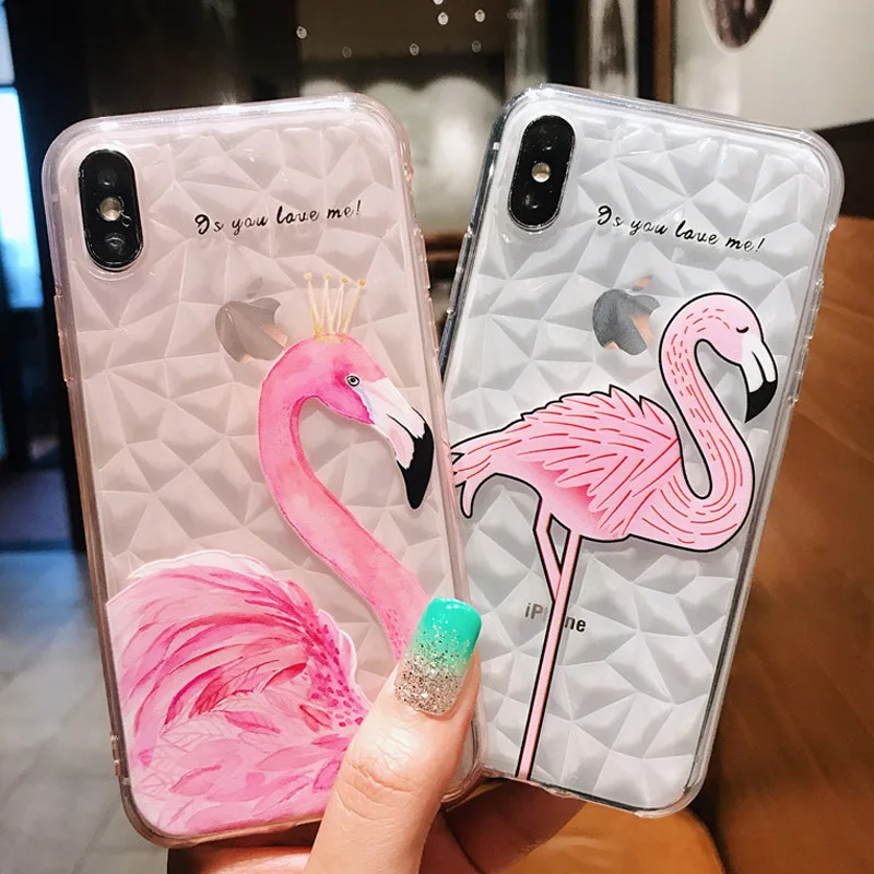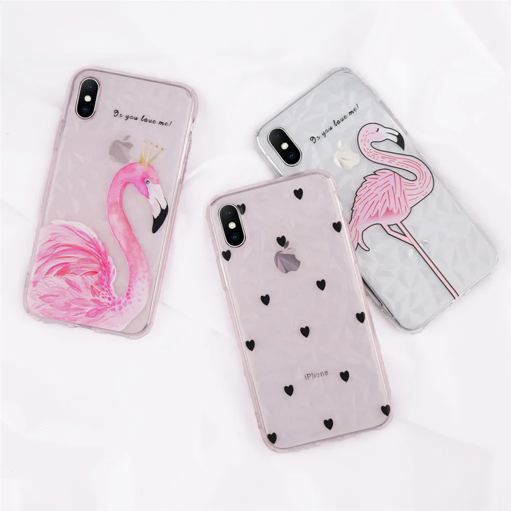 Features:3D Diamond Pattern Clear Love Heart Flamingo