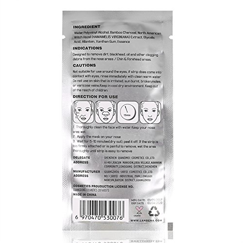 Please Note: 1- Suggest to use on T-zone, nose, and chin area first, if you feel the pain is OK, Do not apply on broken or inflamed skin. 2.Mild blackheads: once a week; Moderate blackhead: twice a week; Severe blackheads: 2-3 times a week. Specifications: Main Ingredients: Bamboo Charcoal, Witch Hazel Extract, Yellow Collagen, Allantion Mask Color: Black Qty: 100Pcs / Set Weight: 50g Type: Blackhead Mask Function: Deep Cleansing, Removing Blackhead and Acne, Shrinking Pores, etc.