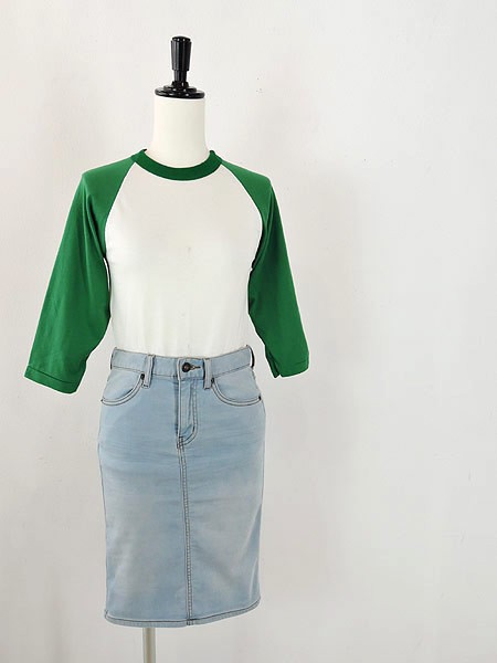 シンプルな緑×白のラグランTシャツ