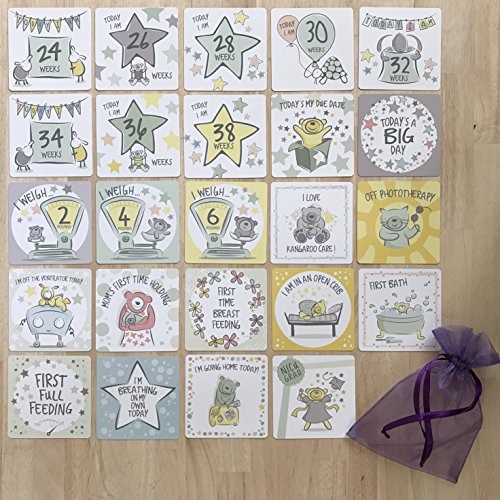 24 BEAUTIFULLY ILLUSTRATED DOUBLE-SIDED CARDS - A total of 48 wonderful milestones are yours to celebrate with our adorable NICU cards