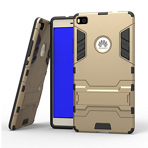 Huawei P8 case,Lizimandu Dual Layer Protective Hybird Armor Case with Kick-Stand Feature for Huawei P8(Gold)