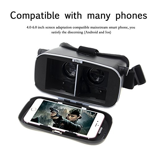 -. Binding : Electronics -. Brand : Wemelody -. Feature : Compatible with 4.0 - 6.0 inch cellphones,more than 300 virtual reality apps on apple app store and google play store for you download to enjoy an immersive 3D movies or 3D games; / Turn your phone into virtual reality viewer,you can enjoy 3D world at anytime anywhere,whether sitting,lying or standing; / Three adjustable straps can distract part of pressure from the bridge of nose and face foam protector for comfortable extended wear,prevents visual fatigue; / Pupil Distance and Focal Distance both can be adjusted at a range of 55mm - 75mm to get the best 3D IMAX effect experience;it's also ok for people with myopia less than 600 degree; / Humanized heat dissipating design is for charging and earphone at the same time,don't worry your phone no power,enjoy your 3D world. -. Label : WemelodyDirect -. Manufacturer : WemelodyDirect -. PackageQuantity : 1 -. ProductGroup : Speakers -. ProductTypeName : CE_ACCESSORY -. Publisher : WemelodyDirect -. Studio : WemelodyDirect -. Title : 3D VR Glasses,Emoonland 3D VR Headset Virtual Reality Box Movie Game for iPhone 6S/6 Plus/6 Samsung Galaxy S5/S6 and Other 4.0" - 6.0" Cellphones