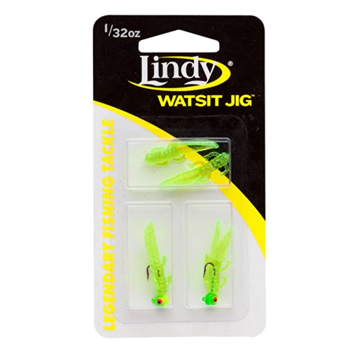 Studio : Lindy Publisher : Lindy Binding : Sports Product Description The Lindy Watsit Jig matches the profile of a number of different species of prey that fish are always after. Four sizes and 18 colors make the Watsit an all-around producer for walleye, trout, bass, stripe, northern pike, salmon, perch, crappie and panfish. It is the one grub that covers all of the bases. The Lindy Watsit Jig comes pre-rigged on a color matched top quality Lindy Jig head and is available in 4 different jig head sizes. The 1/16 oz. Watsit jig comes with the 1 3/4 in Watsit grub. The 1/8 oz. and 3/16 oz. size Watsit jigs come with the 2in Watsit Grub and the 1/4 oz. Watsit jig is rigged with the 2 in Fat Watsit grub. 2 jigs per pack. 0