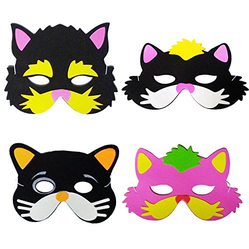 Each set comes with 12 total masks, 3 of each style: Black & White Kitten Mask, Black & Orange Kitten Mask, Black & Yellow Kitten Mask and Pink Kitten Mask.