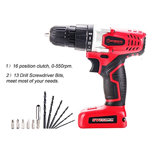 WORKSITE 8V Electric Cordless Drill ScrewDriver With 1300mA Lithium-Ion Battery, 16 Position Keyless Clutch, Variable Speed Switch, Lightweight, Built-in LED Light, 13 Pcs Bits Set, Magnet Wristband