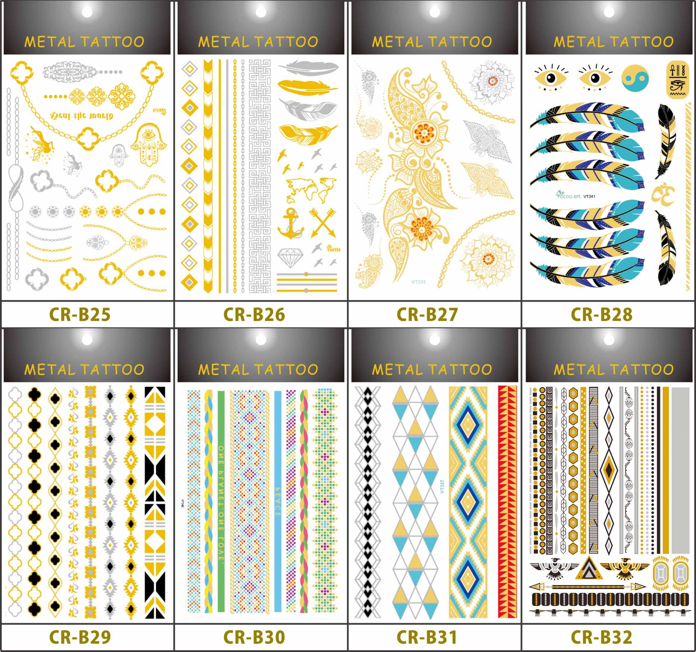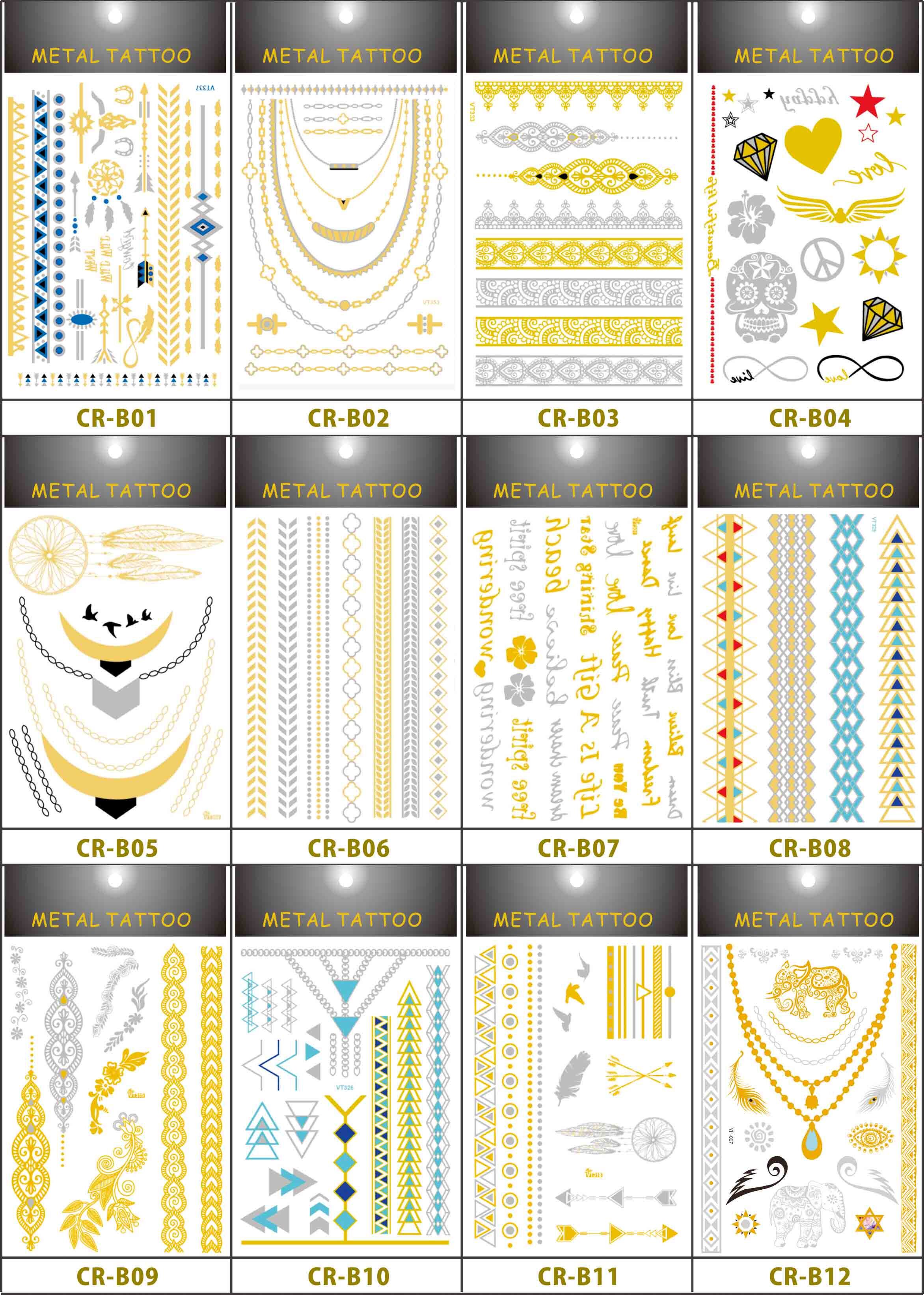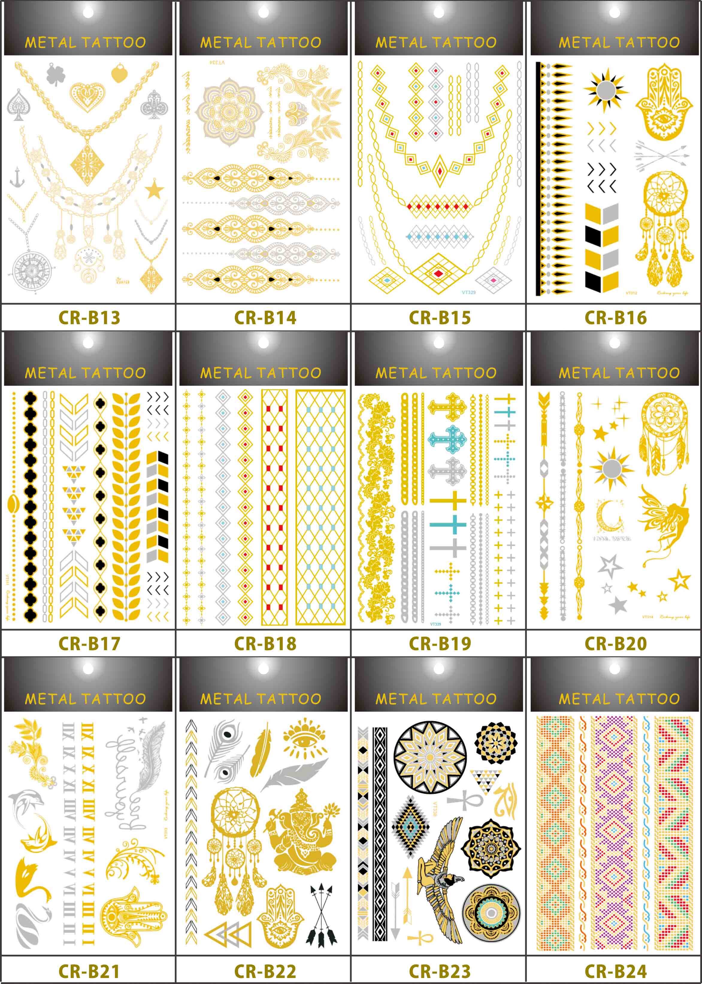 大张15*21cm 12张套装外贸原单欧美爆款纹身贴纸防水烫金纹身贴金属纹身贴包邮