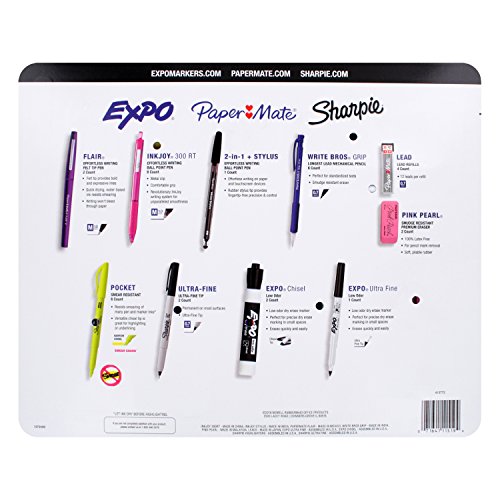 -. Feature : 2 Expo Low Odor Chisel and 1 Expo Ultra Fine / 2 Sharpie Ultra Fine and 6 Sharpie pocket highligthers / 4 Papermate Lead Refills (12/box) and 2 Papermate flair pens / 8 InkJoy ball point pens and 1 Stylus / 6 Write Bros Mechanical Pencils and 2 PinkPearl Erasers