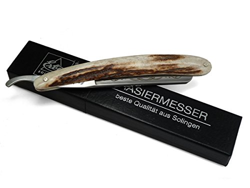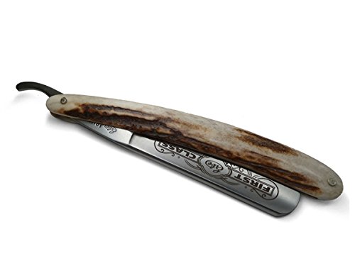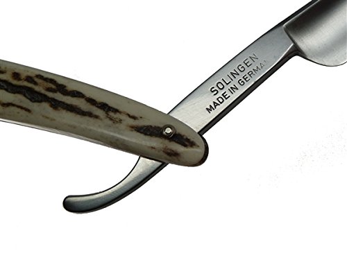 4/8" HALF HOLLOW CARBON STEEL STRAIGHT RAZOR WITH STAG HORN SCALES BY ERBE, SOLINGEN GERMANY