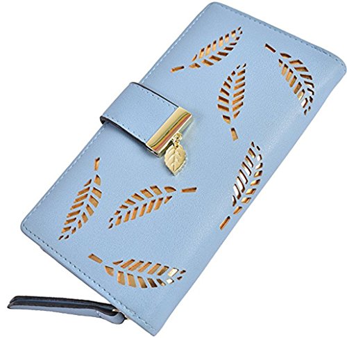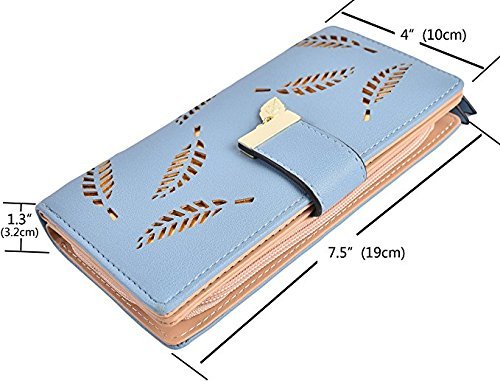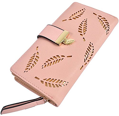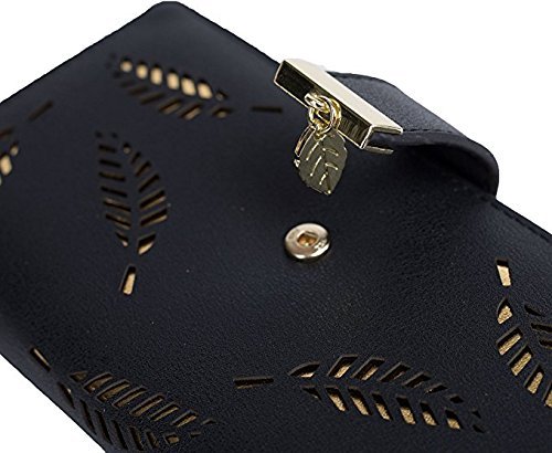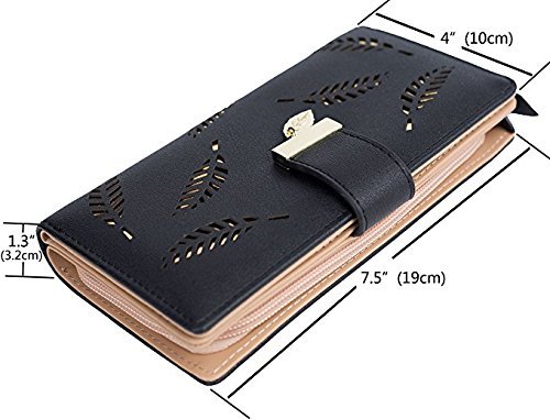 (Chang Ning)/Accessories/Wallets, Money Key Organizers/DIRECT FROM USA/Women's Wallet Hollow Leaf Pattern Bifold Leather Lady Long Holder Wallet Purse Coin Button Clu...