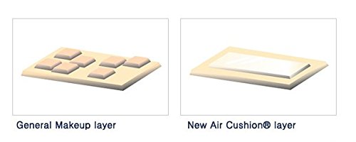 After using basic skincare products, apply air cushion at the step of makeup base or foundation or use as sun block in the afternoon or to touch up makeup (can be used before or after makeup).
