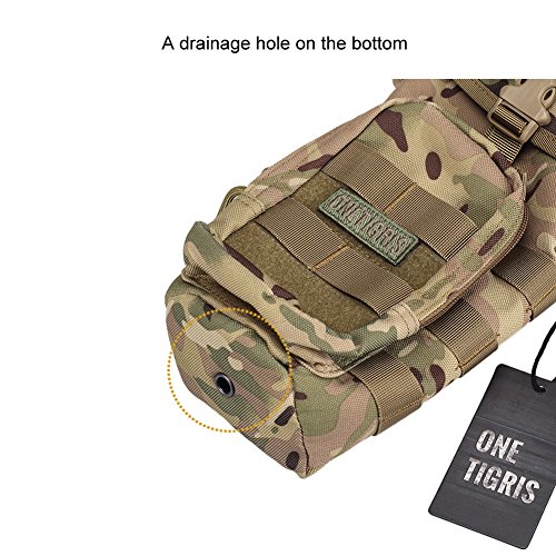 -. Binding : Misc. -. Brand : OneTigris -. Feature : Main Compartment Measures 10"x4": Designed to fit a 32oz (1L) Nalgene bottle or similarly sized container / Front 7"x4" Zippered Pocket: With one inside mesh pouch for storing some gears like phone, keys, etc / Universal Webbing Platform Compatibility: Front & Sides MOLLE webbings for additional attachment, and two rear PALS straps for attaching to backpack / Removable Shoulder Strap: Two sviwel snap hooks on the end for utmost flexibility / Provides Heavy Duty Use with Superior Shock Protection: Constructed of lightweight water-resistant 1000D nylon fabric with inner foam padding -. IsAutographed : 0 -. IsMemorabilia : 0 -. Label : OneTigris -. Manufacturer : OneTigris -. PackageQuantity : 1 -. ProductGroup : Sports -. ProductTypeName : SPORTING_GOODS -. Publisher : OneTigris -. Studio : OneTigris -. Title : OneTigris COMMANDO Water Bottle Pouch 10"x4"