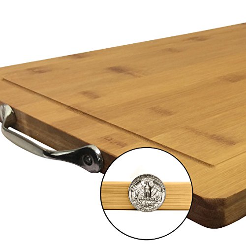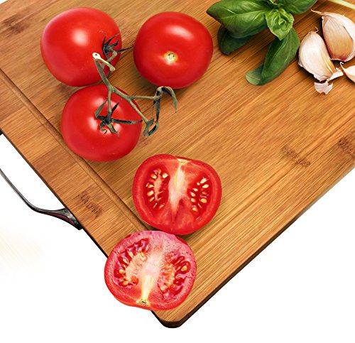 - Feature : ★ PROFESSIONAL GRADE FOR THE HOME CHEF - Using only the best naturally antimicrobial bamboo, Suave Touch brings you this phenomenal quality wooden Cutting Board! Keep your knives sharp and you kitchen classy with this large 18" x 12" x ¾" block. It even has a helpful carrying handle to make accessing it from your cabinets a breeze! / ★ GROOVY & REVERSIBLE - Our chopping block is ideal for meats and other juicy fruits and veggies. With a deep groove around all edges, it catches any and all liquid that may seep from your favorite ingredients, leaving your countertops tidy, and your preparation chaos all in one easy to clean place. Reversible so you can use both side for cutting and only one side is grooved. / ★ STAY SHARP - Unlike some other types of prep boards, bamboo is easy on your blades, keeping you from needing to sharpen them as often. This saves you time and the hassle that a dull blade can bring when cutting softer fruits like tomatoes. It's the best choice in sanitary convenience! / ★ EVIRONMENTALLY SOUND - Though those plastic cutting boards get the job done, they leave a huge carbon footprint that affects our environment, and the older they get, the more they can start to leach chemicals into your food. Our boards are completely eco friendly and will be with you for years to come! / ★ GUARANTEED - We know you work hard for your money, and we want you to know that your investment is protected! From the day of purchase, you are covered for life! Whether you need a replacement or a refund, just notify us, and we'll make sure you are completely taken care of.