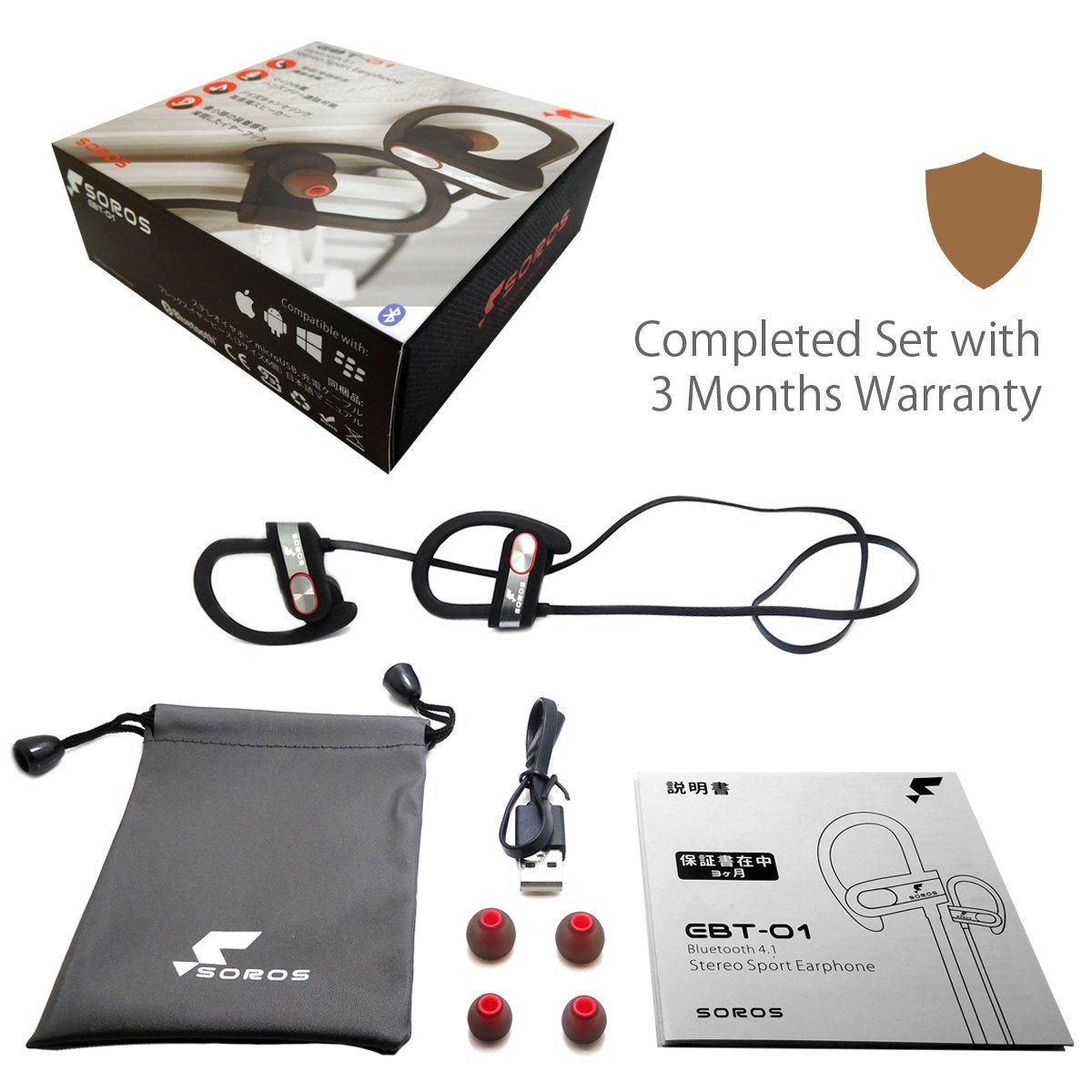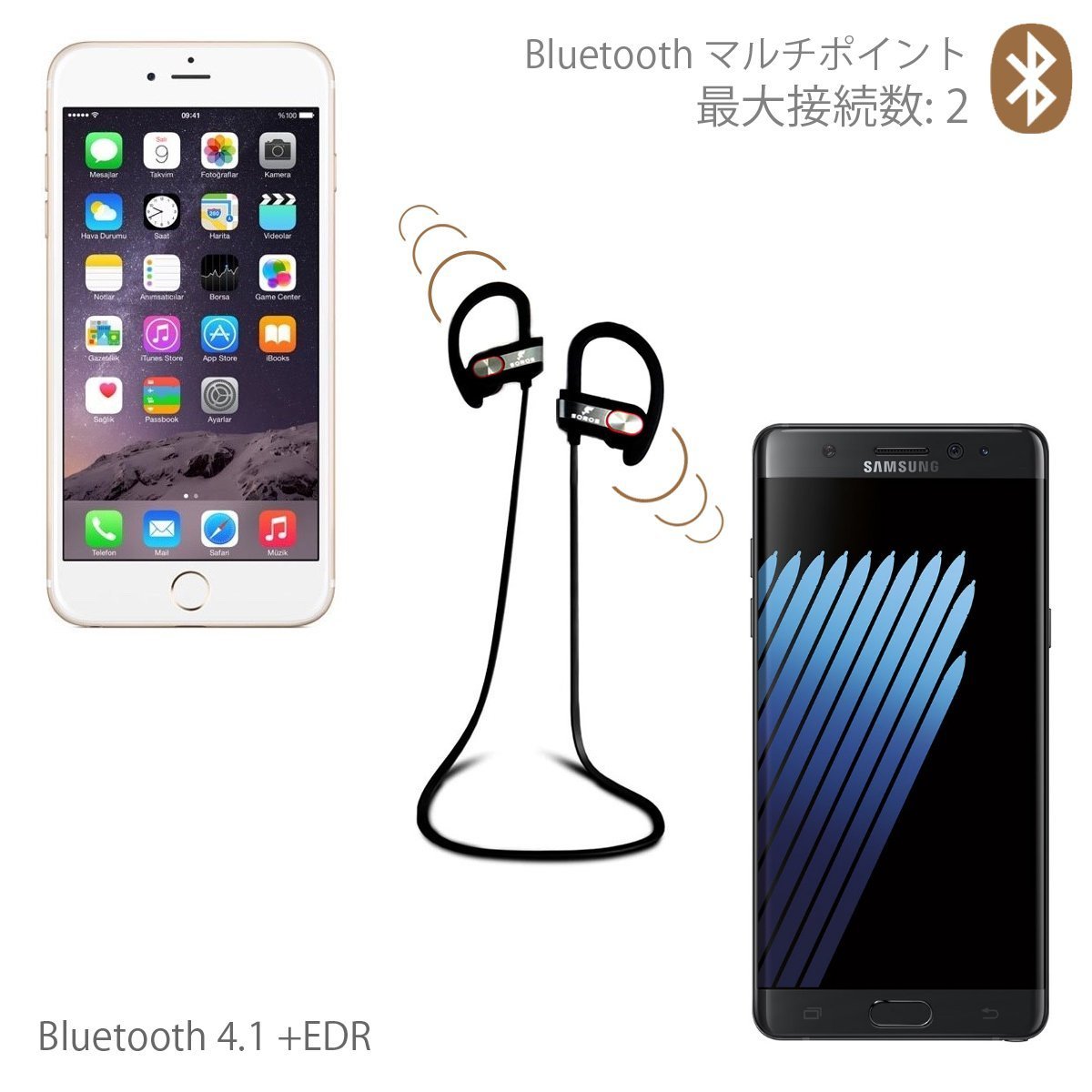 【SOROS】 Bluetooth 4.1 + EDR stereo earphone microphone sweat-proof specification EBT-01