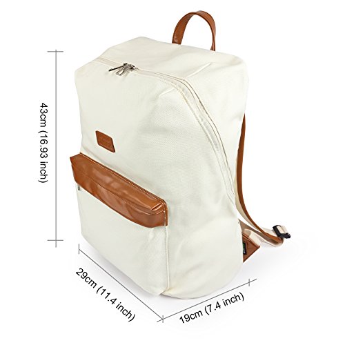 -. Binding : Electronics -. Brand : Lavievert -. Color : beige -. EAN : 6958489585447 -. Feature : STURDY CANVAS & PREMIUM PU LEATHER - You'll love it as soon as you get this backpack. Made of high density canvas and premium PU leather, Lavievert's canvas backpack is sturdy, durable and stylish, easily carries your gear for years to come. / ROOMY COMPARTMENT FOR STORAGE - A single main compartment is roomy enough to hold your 15 inch laptop securely inside. There is enough space in interior compartment to store all your textbooks, spiral notebooks, paperbacks, stationery, clothes, towel, travel toiletry, or anything you want to take with you. Two interior slip pockets are designed to keep your phone, wallet, cards, headset, etc. / FRONT POCKET FOR ORGANIZATION - A zippered front pocket is designed with high quality brown PU leather, adding more room for storing your pens and pencils, keys, transit cards or other necessary gadgets. Brown PU leather matches with white canvas, amazing for school, travel, camping, sightseeing, shopping, or daily use. / PADDED SHOULDERS & TWO-WAY ZIPPERS - Adjustable padded shoulder straps help relieve pressure on shoulders, giving you a comfortable and happy journey wherever you go. Dual access zipper pullers are easy and convenient to be slide smoothly. / TRUSTY LAVIEVERT BRAND - With "lavievert" logo on front PU leather and zipper pullers, you can recognize Lavievert brand easily. -. Label : Guangzhou FanMai Trading Co., LTD -. Manufacturer : Guangzhou FanMai Trading Co., LTD -. ProductGroup : PC Accessory -. ProductTypeName : CARRYING_CASE_OR_BAG -. Publisher : Guangzhou FanMai Trading Co., LTD -. Studio : Guangzhou FanMai Trading Co., LTD -. Title : Lavievert Casual Canvas Laptop Bag / School Backpack / Unisex Shoulder Bag / Computer Rucksack with Brown PU Leather for 15 Inch Laptop