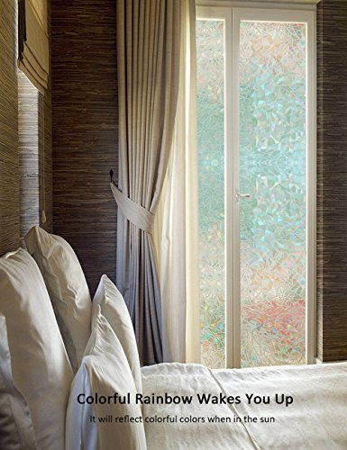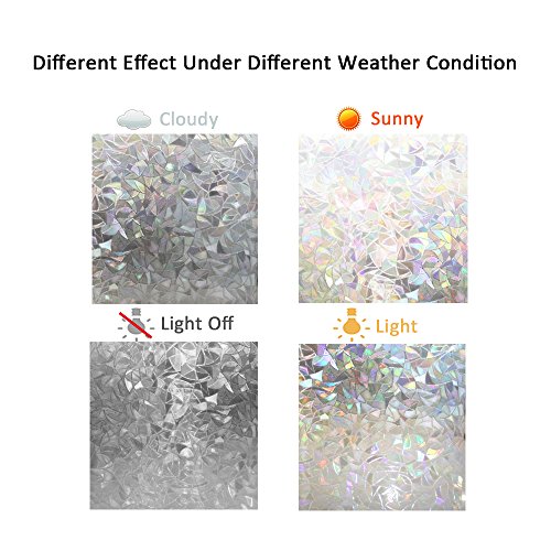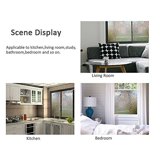Totally Reusable, Fantastic Eco Choice No Residue left on the glass at all, you can re position it and reuse it after years, ideal for rental places. Tips : When applying in cold weather: Soft the film up by blowing hot air to it using a hair dryer(Heat Resistant up tp 176℉) Works on SMOOTH, FLAT and CLEAN GLASS surfaces More efficient to work with others while putting it up Affix Scotch Tape on a corner of the back side(the smooth side) to quickly remove the backing film QA Q1: Why my film do not stay? A: Have not wet the window with water, or have not remove the transparent backing film. S: Remove the transparent backing?film, and then wet the window with soapy water. Q2: I have removed the back film and wet the widow, why still can not stay? A: You apply the wrong side. The film is divided into two layers, one side is smooth, and the other side is rough. S: Tear it off and retry another side to paste again. Q3: There are a large number of small bubbles. A: Too less water. S: Tear it down, spray a lot of water and paste it again.
