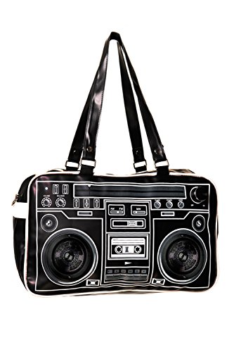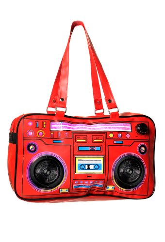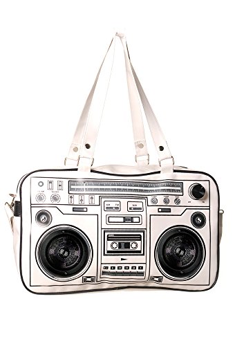 Binding : Apparel Product Description Designed with a cute radio print and equipped with fully functioning speakers, the Radio Speaker Shoulder Bag is practical and stylish. The bag has extra detachable and adjustable faux leather shoulder straps with clip fastenings and is made from 100% polyurethane. It has a top zip opening with handy inner pockets. Two further pockets with zip closures are included as well as pen holders. Useful features of the Radio Speaker Shoulder Bag include: * Detachable Shoulder Strap * Adjustable Shoulder Strap * Inner Pockets * Two Zip Closure Pockets * Pen Holders * Zip Opening * Speakers Working With Any Mp3/Mp4 Device * Stylish Radio Print