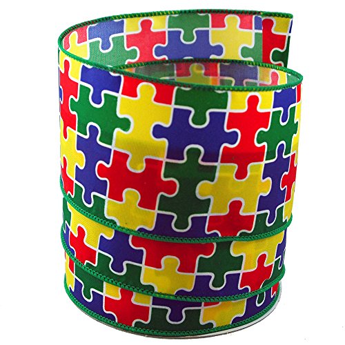 Autism Awareness Puzzle Satin Wired Ribbon #40 - 2.5in x 10yards