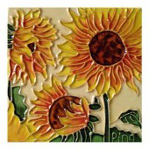 Three Sunflowers Decorative Ceramic Wall Art Tile 4x4