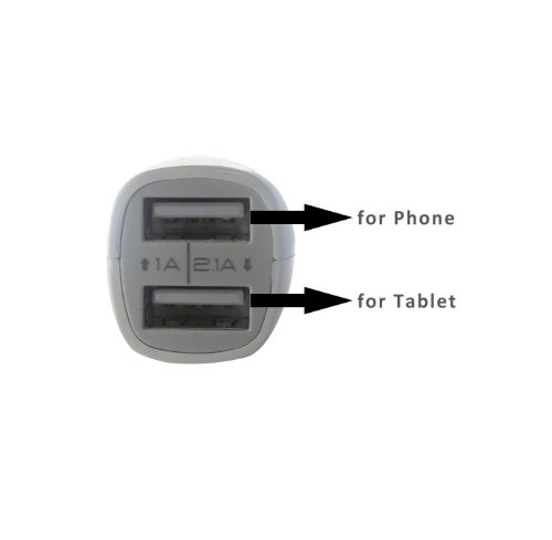 - Feature : Charges up to two devices at once while you are on the road / Small and subtle soft, blue-colored LED power indicator is easy to see, but will not cause a distraction while on the road / Compact, lightweight and simple design - perfectly portable and unobtrusive / Durable, high-quality materials provide long-lasting function and reliability / Included: 2 TechMatte High-Speed 2.1A USB Dual-Port Car Chargers (1 black /1 white)