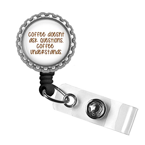 Coffee Doesnt Ask Questions Silver Black Badge Reel Retractable ID Tag Holder