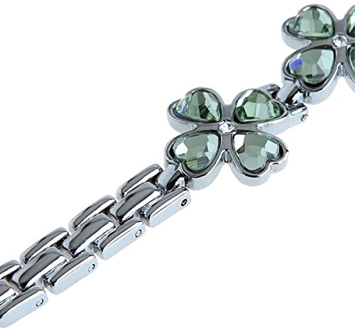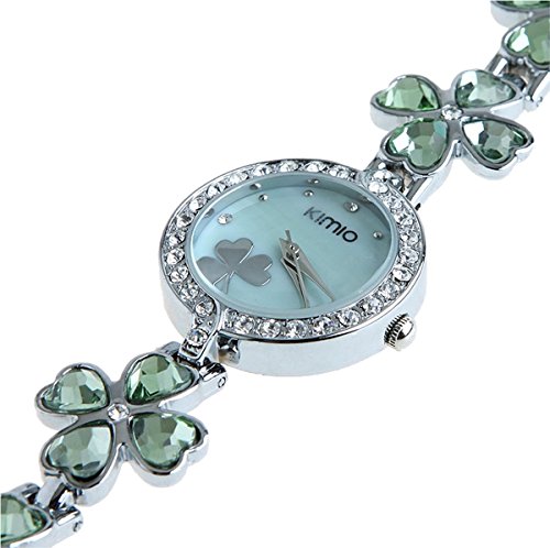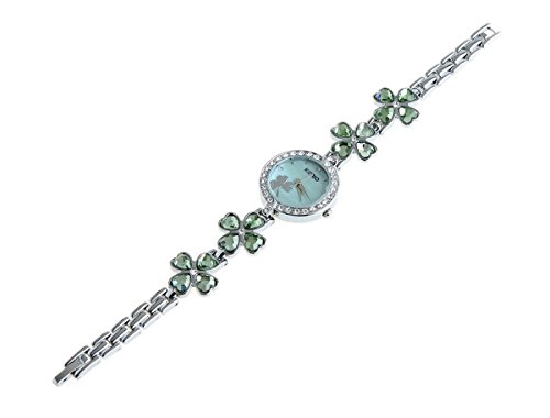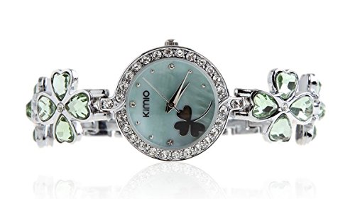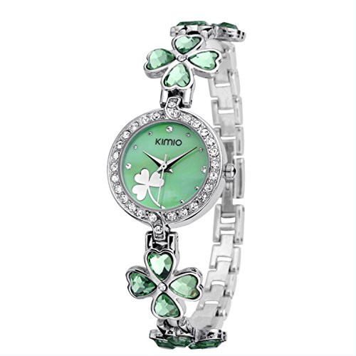 In the package: Ledhill KIMIO Shamrock Crystal Flowers Stainless Steel Link Ladies Bracelet Quartz Watch K456L ( GREEN) X 1 packed in Ledhill's factory sealed box, perfect as gift!