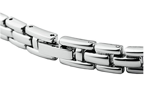 Delicate crystal flower stainless Steel links add an accent stripe down the center of this striking women's dress watch from KIMIO
