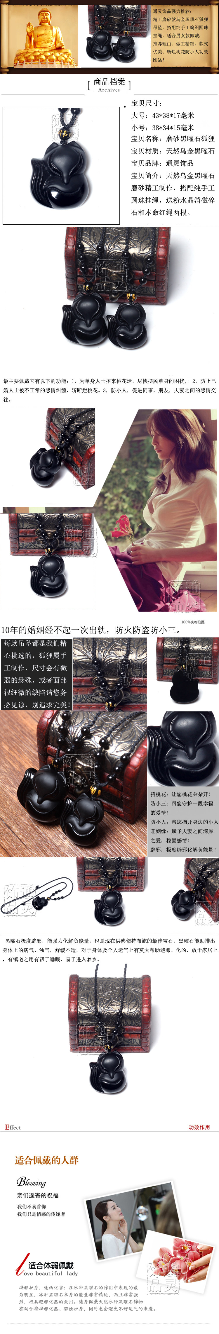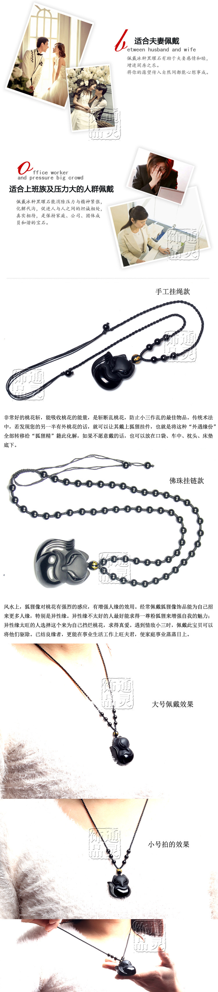 ? ? ?In feng shui, the fox as a strong sense of peach, with enhanced popularity of utility. Select the appropriate location in the bedroom, placed a statue of a fox like a fox or often worn as jewelry can provoke more karma for themselves, especially Yixing Yuan. Fox as usual pink and black is better: pink with Bo, Yixing Yuan is not a good person best able to obtain a powder to enhance self-fox charm; black to professionals, Yixing Yuan who is too busy to choose this for themselves block rotten peach, and seek true love. If peach excessive, leading to an affair continued, chaotic love life, we recommend using the carved obsidian fox, carry around or placed beside the bed at home, have a role to suppress peach, peach go on energy and resolve black fox off. Obsidian fox with her ??husband, said to avoid repetition romantic encounters it! You do not prevent a try! Peach sounds good though, but for a friend who has loved one, this is not good news. The obsidian fox gift he (she) can resolve this unnecessary trouble, let your feelings forever. Let obsidian fox guard your beautiful love! ! If you find your other half outside the peach, then it can be allowed to wear the black fox, that is, this "affair fate" all transferred to the "fox" to take this resolved, the parties can be a lot of fresh, have more energy and time on the cause! If you can not wear, can be placed inside the pocket, the car, the next bag, pillow, mattress.