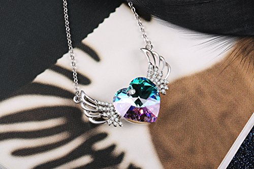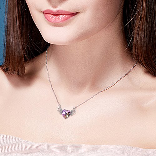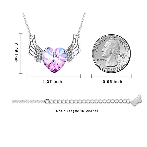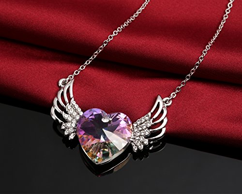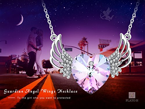 -. Title : Angel Wing Necklace PLATO H Angel Wings Guarded Heart Pendant Necklace Love Heart Pendant Necklace with Swarovski Crystals Heart Shape Necklace Gift for Woman, Purple Pink , 18"