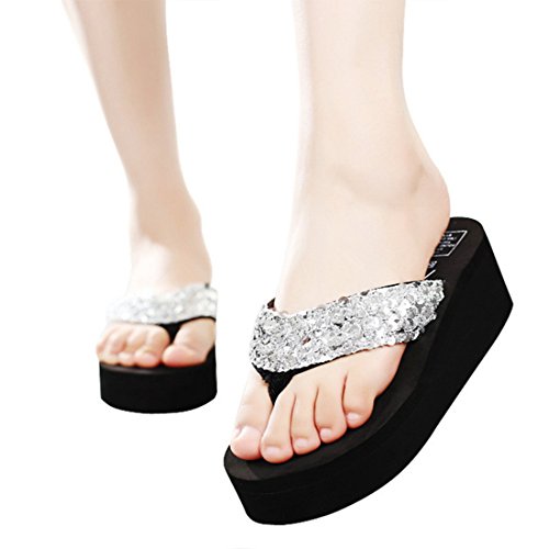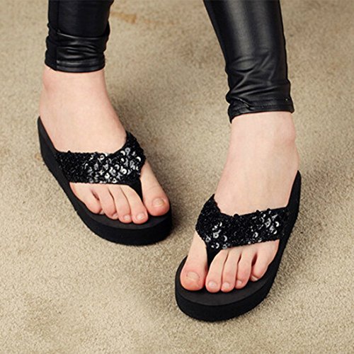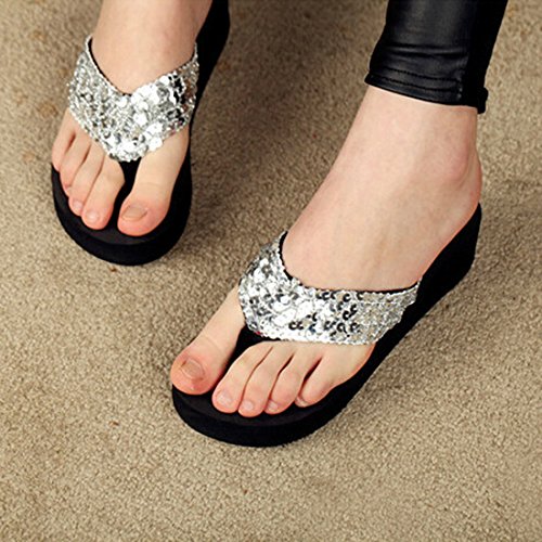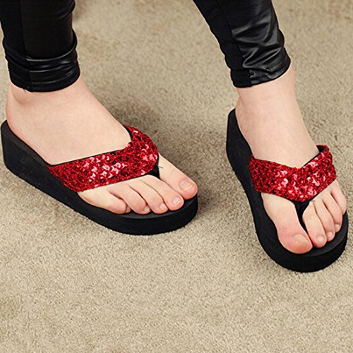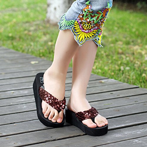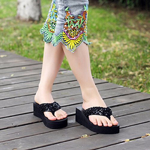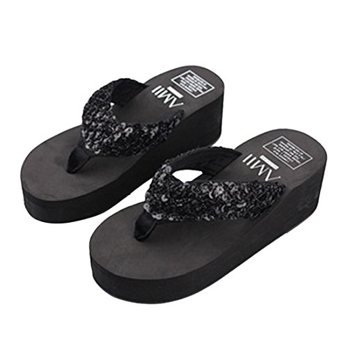 Product Description Style: comfort Upper material: cloth Sole material: Rubber soles Style: Flip Flops High heels heel: (5-8cm) With the bottom slope with style: Size:36 37 38 39 40 41 42 Production process: adhesive shoes shoes Suitable for occasions: Beach